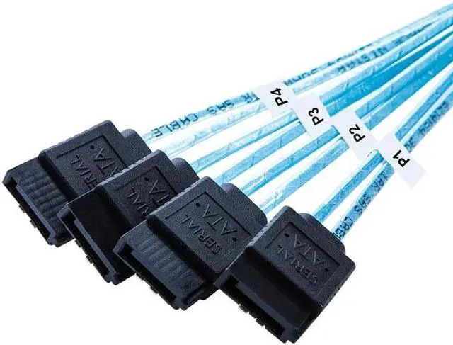 SFF 8643 Mini SAS HD to SATA Cable is SAS RAID controller to sata hard drive cable, This MINI SAS HD SFF-8643 controller to Sata target cable designed with labeled on 4 sata breakout cable for you easy setup, locking connector latches provide stable connection.