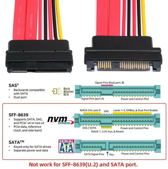 1) Vszerda SFF-8482 Extension Cable SAS 29Pin SFF-8482 Male to SFF-8482 Female Hard Disk Drive Extension Cable 0.5m.