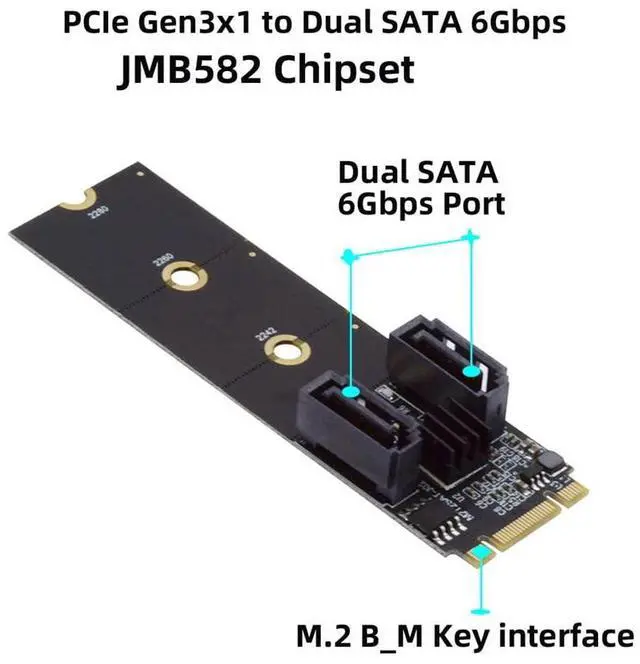 NGFF Key B+M PCI Express to SATA 3.0 6Gbps Dual Ports Adapter Converter Hard Drive Extension Card JMB582 2230 2242 2260 2280