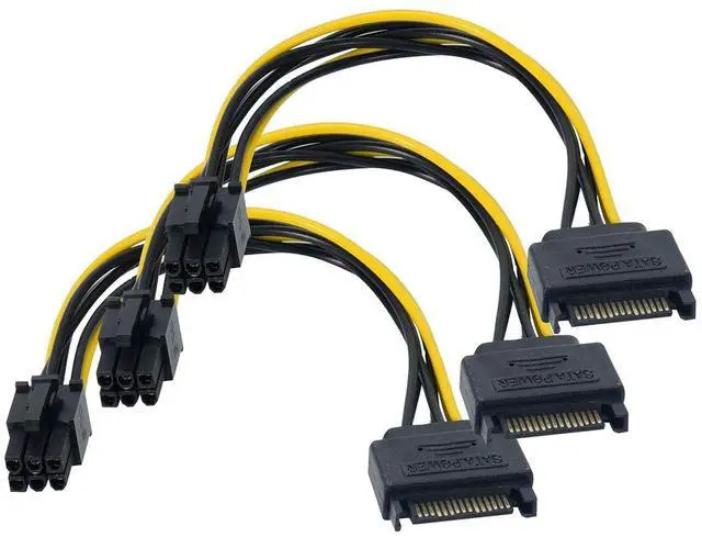 3 Pack x 6-pin PCIe to 15-pin SATA power cable