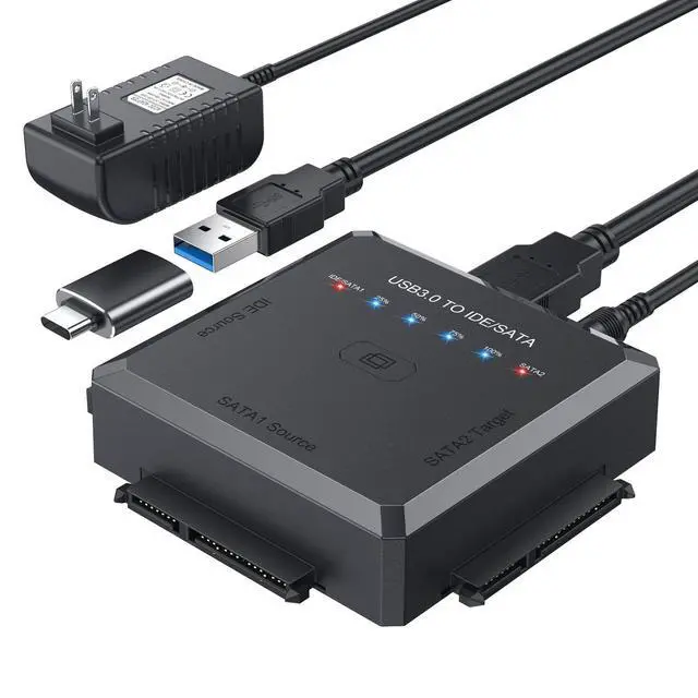 - Friendly for Use: Just plug and play with no driver or software needed! For new HDD/SSD, please go to "Disk Management" to initialize it first, and then your HDD/SSD can be recognized. When all 4 blue lights: 25%, 50%, 75%, 100% , come on at the same time, the cloning is successful. The use of this sata to usb 3.0 adapter is easier and more convenient than ever