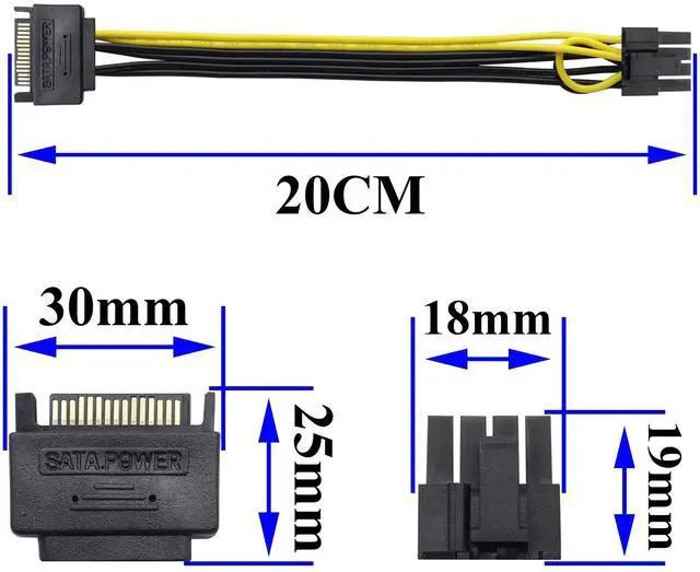 Function: 15-Pin SATA Male to 8 Pin (6+2 Pin) PCI-Express(PCI-E) Female Video Card Power Cable