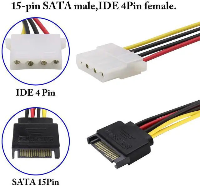 1.Convert the 15pin SATA power plug into two 4-pin power sockets, so that the computer power supply without SATA power plug can power SATA devices; both ends are 4P Molex jacks and the other end is 15-pin terminals, which are used for power to computer hard drive. Pure copper core, high speed transmission.