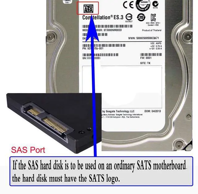 Please note: IF the SAS hard disk is to be used on an ordinary SATA motherboard the hard disk must have the SATA logo.Please pay attention to the description in the 4th and 5th pictures.