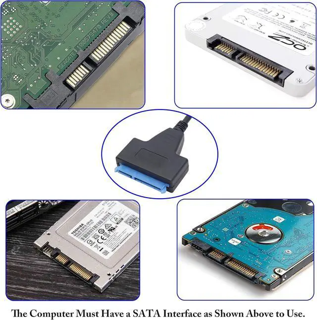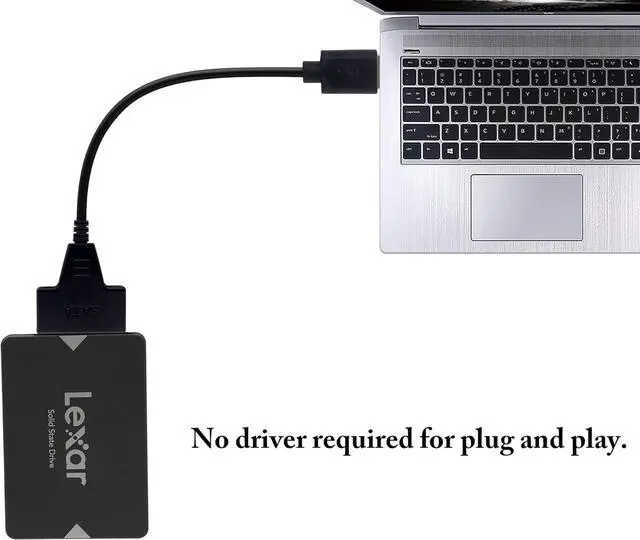 "This SATA to USB cable is an external drive adapter that gives you quick and easy access to a SATA drive through the USB-A port on a laptop.ts plug-and-play and doesnt require drivers. This SATA solid-state (SSD) or hard drive (HDD) adapter lets you upgrade to an external 2.5"""" SATA SSD or HDD. The cable lets you: add drive space, perform backups, create disk images, implement data recovery, and transfer content between the drive and the laptop. The hard drive converter externally connects directly to your hard drive connector and your computer's USB port. Faster Transfer Speeds with UASP The cable supports USB 3.0 data transfer speeds of 5Gbps. But, you can experience transfer speeds up to 70% faster than conventional USB 3.0, when connected to a computer that also supports UASP. With UASP you can utilize the full potential of a SATA III SSD or HDD. UASP is supported in Windows 8, Mac OSX (10.8 or above), and Linux. faster write speed over traditional USB 3.0 at peak performance. This portable adapter features a lightweight design with no external power required, for easy storage in a laptop bag or carrying case. Plus, the cable-style adapter makes it easy to swap between hard drives without having to install your drives into an enclosure. Perfect for easy drive access for data migration, drive cloning and data backup applications.