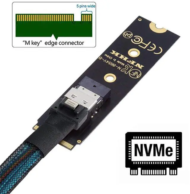 NGFF M-Key NVME Male to Female Extension Cable 40cm with SFF-8654 Connector for Mainboard SSD
