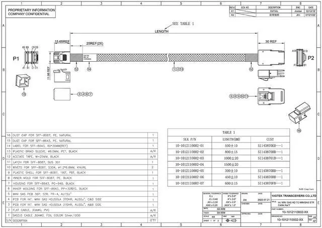 High Density (HD) MiniSAS SFF-8643 to MiniSAS SFF-8087 Internal cable assemblies are available for SAS 2.1, 6Gb/s and SAS 3.0, 12Gb/s specification. Like the external HD MiniSAS, this new connector uses less PCB real estate and allows higher port density for internal hosts and devices. Hybrid versions of these new cables will allow for a smooth transition from 6Gb.