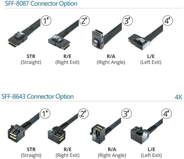 High Density (HD) MiniSAS SFF-8643 to MiniSAS SFF-8087 Internal cable assemblies are available for SAS 2.1, 6Gb/s and SAS 3.0, 12Gb/s specification. Like the external HD MiniSAS, this new connector uses less PCB real estate and allows higher port density for internal hosts and devices. Hybrid versions of these new cables will allow for a smooth transition from 6Gb.