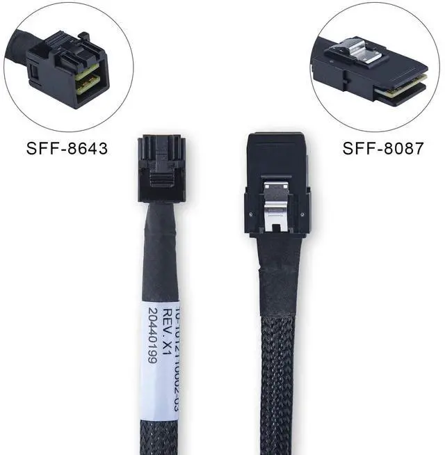 High Density (HD) MiniSAS SFF-8643 to MiniSAS SFF-8087 Internal cable assemblies are available for SAS 2.1, 6Gb/s and SAS 3.0, 12Gb/s specification. Like the external HD MiniSAS, this new connector uses less PCB real estate and allows higher port density for internal hosts and devices. Hybrid versions of these new cables will allow for a smooth transition from 6Gb.