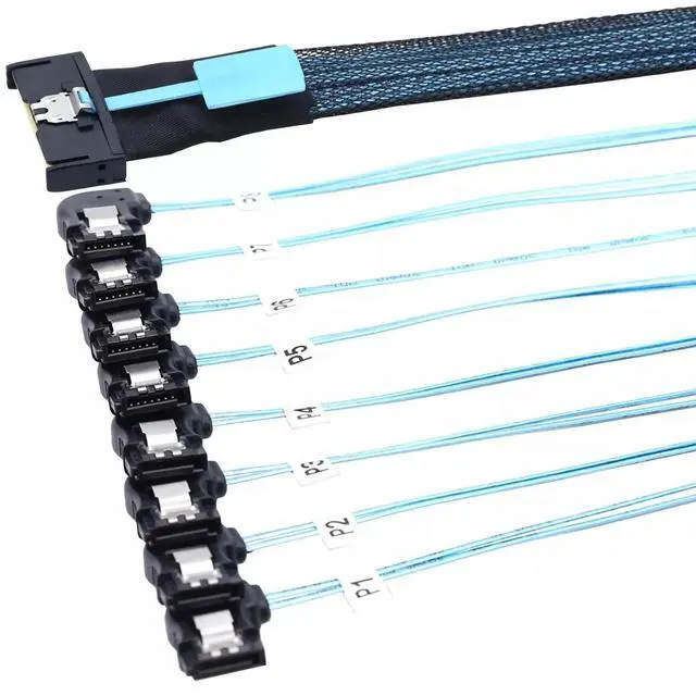 Versatile Connectivity: Converts MCIO 8X SFF-8654 8i interface to 8x SATA 7P left female connectors, ideal for various hardware configurations.