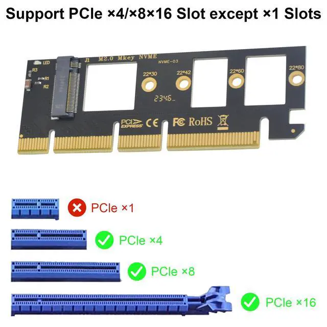 M.2 NVMe to PCIe X1 Adapter: SK1 conversion card Converting one PCIe X1 slot on the motherboard to the M.2 Key M slot allows you to install M.2 NVMe SSD into this Key M slot.