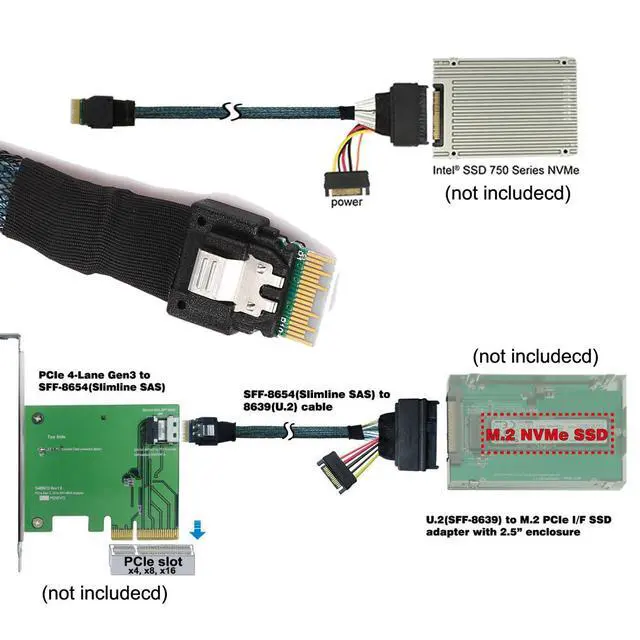U.2 U2 SFF-8639 to Slimline SFF-8654 4i NVME PCIe SSD Cable for Mainboard SSD 750 p3600 p3700 M.2