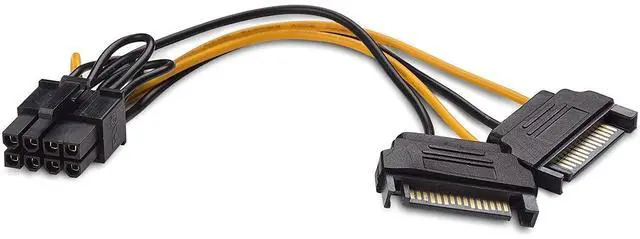 8 Pin PCIe to Dual SATA 15 Pin Male Power Cable, 2X 15-Pin SATA Male to 8 Pin PCI-Express Female Video Card Power Adapter Cable (20CM/8inch)