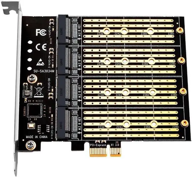 Features: Compliant with PCI-Experss. Support 4 Port B key m. 2 sata protocol ssd. Bus Type of PCI Express X1 3.0 interface. The supported communication rates are 10 Gbps. No need to drive. Support 2230/2242/2260/2280 m. 2 ssd. Only Support m. 2 sata protocol ssd, not support m. 2 nvme ssd.