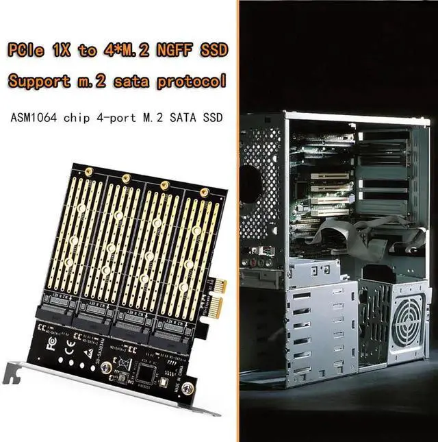 PackageIncluded: 1 x PCIE 1X to 4 Port M. 2 SATA SSD Expansion Card for Chi a Mining