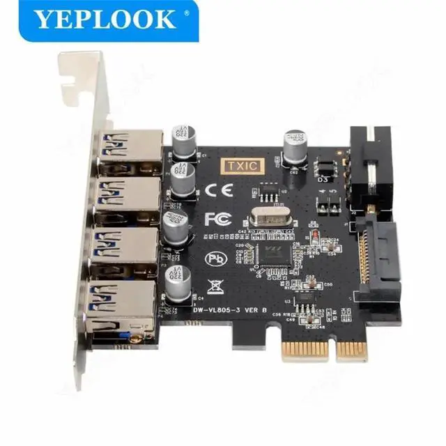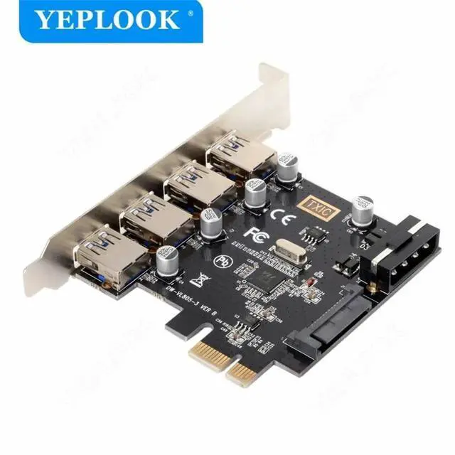 PCIe to 4 Port USB 3.0 Expansion Card with 19Pin+SATA Dual Power Connector PCIe X1 Adapter Riser Converter USB 3.0 HUB VL805 Chip