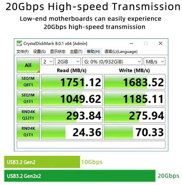 The Type-C port supports 20Gbps USB Data from SSD/HDD.