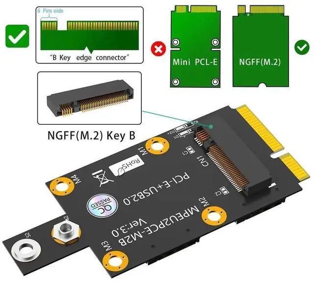 M. 2 Key B to Mini PCI-E Convert Card 3G 4G 5G Dual Nano SIM Card Push Connector WWAN Module M. 2 Key B to USB 2.0 Extend Adapter