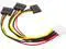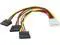 [Product Interface]: One end is a large 4pin female connector, and the other three ends are SATA female connectors.