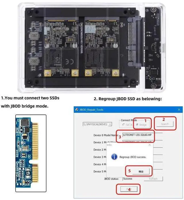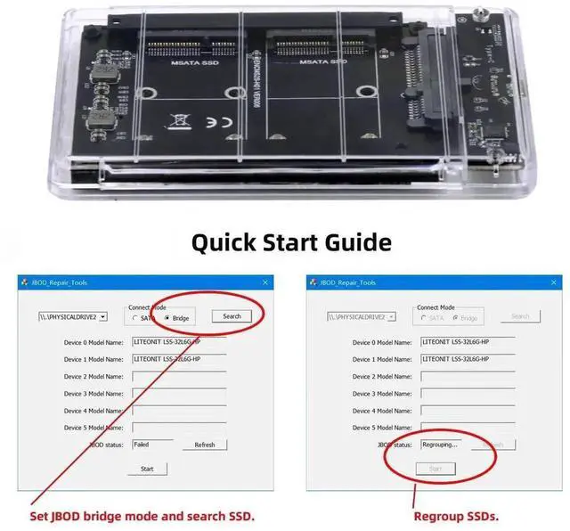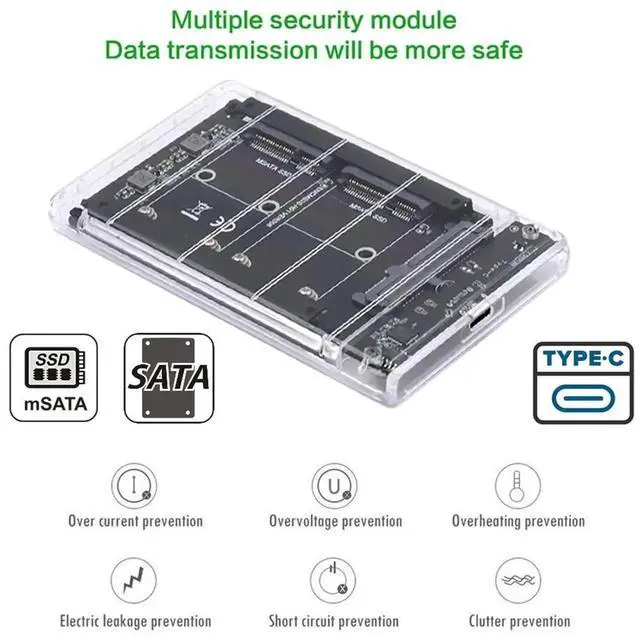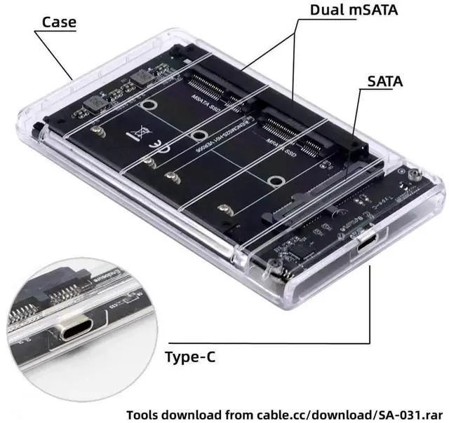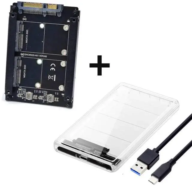 Dual MSATA Mini-SATA SSD Card JOBD Raid0 Span Bridge to USB3.0 Type-C USB-C 2.5inch SATA Combo Enclosure