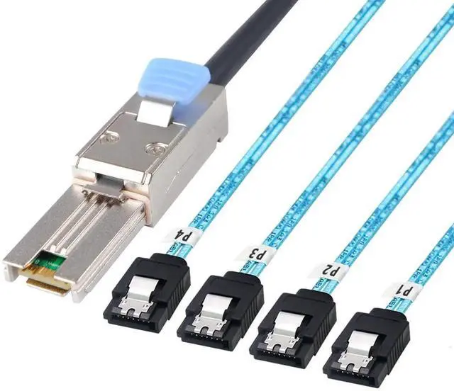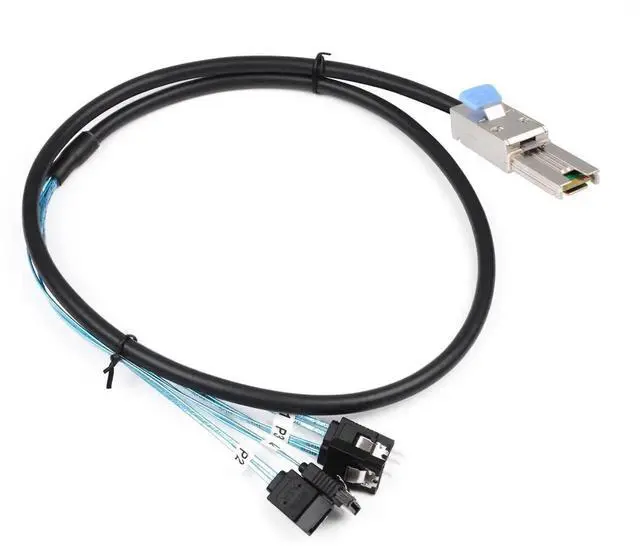 Mini SAS guarantees performance at 3.0 Gigabits per second. This SAS cable features Mini SAS type SFF-8088 connectors and Internal SATA connectors. This cable connects a to SFF-8088 Mini SAS Controller directly to 4 SATA drives.