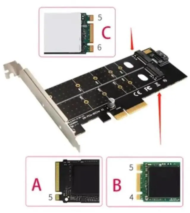 PCI-E 4x to M. 2 M Key + B Key NVMe SSD NGFF SATA Port Riser Card Expansion Converter Adapter For Gaming Mining BTC Chia TXB044