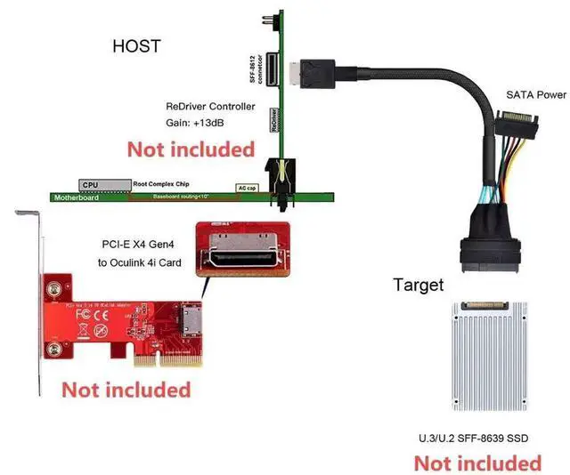 Oculink SFF-8611 to U.2 U.3 SFF-8639 NVME PCIe PCI-Express SSD Cable for Mainboard SSD.