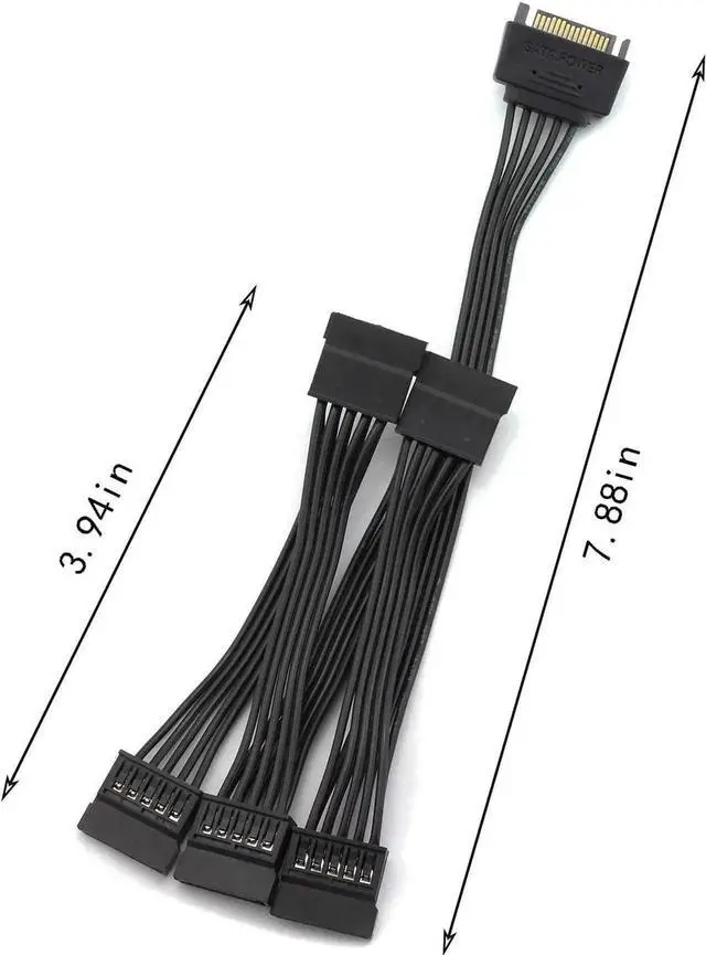 The 15 Pin SATA 1xM to 5x FM Power Extension Cable is to provide a convenient solution for adding more SATA ports.