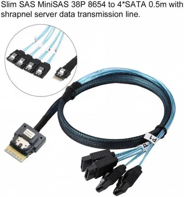 Slim Line SAS 4.0 SFF-8654 4i 38pin Host to 4 SATA 7pin Target Hard Disk Fanout Raid Cable 50cm