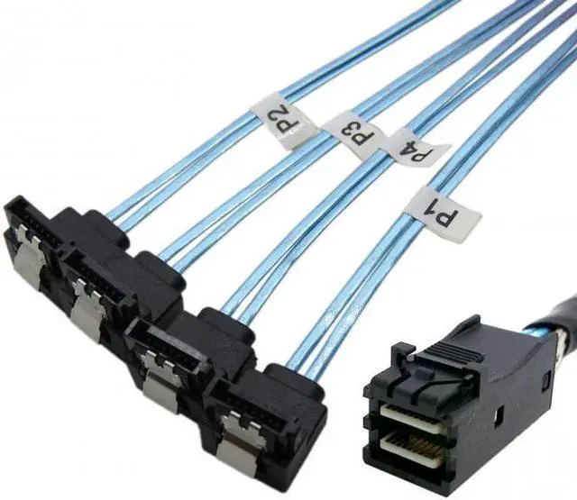• Internal Mini SAS SFF-8643 to to angled 4 SATA 7pin hard disk data Cable
