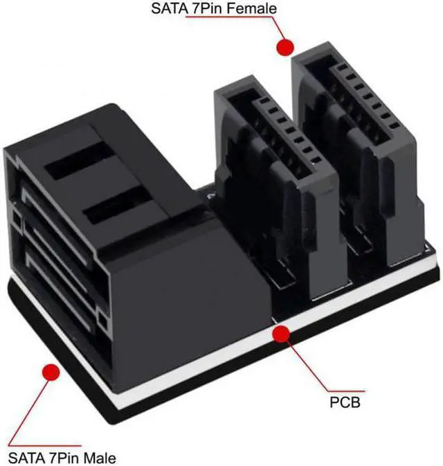 Dual SATA 7Pin Female to 7Pin Male Vertical 90 Degree Angled Adapter Low Profile for Desktops SSD HDD Mainboard Motherboard