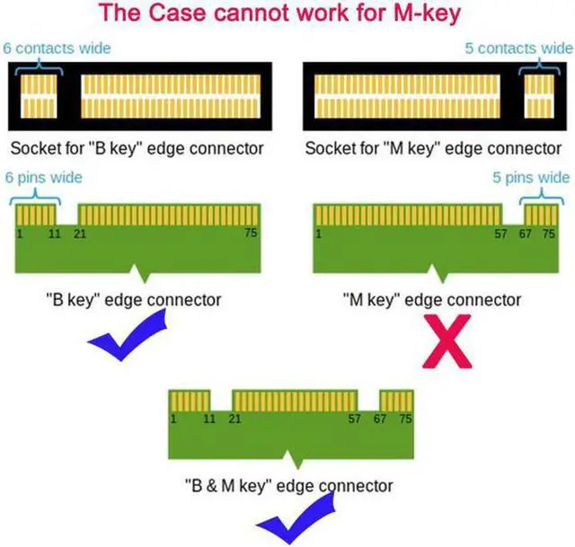 2. The adapter only work for B-key or B/M-key socket NGFF SSD, cannot work for M-key socket.