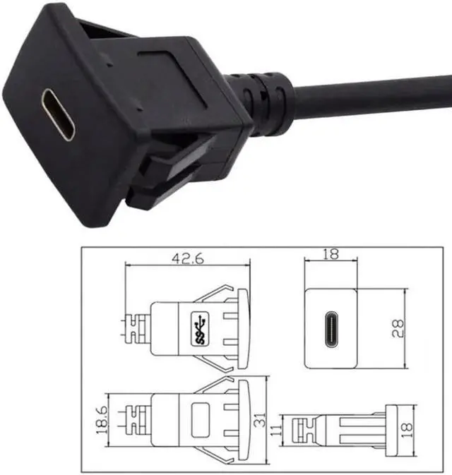 Aomoproing Waterproof Dustproof USB-C Type-C USB 3.1 10Gbps Extension Flush Car Latch Mount Extension Cable for Dashboard Panel