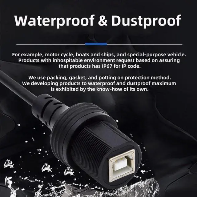 1m Waterproof Dustproof 480Mbps USB 2.0 Standard B Type Male to Female Extension Data Power Cable Car Panel Mount Design