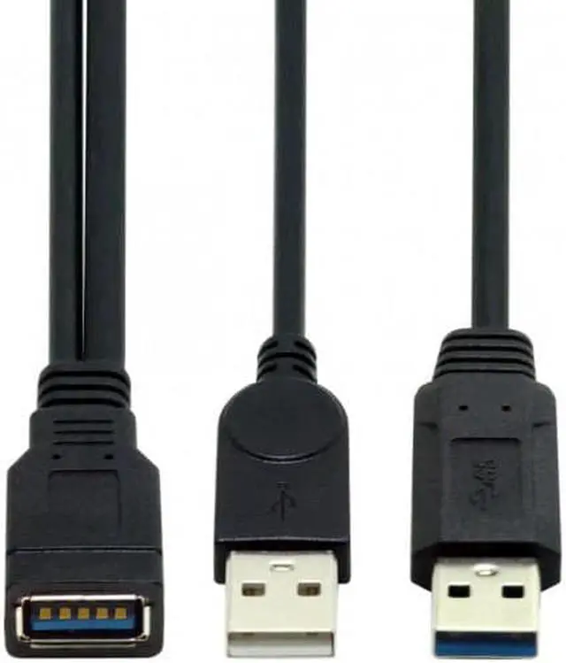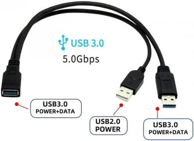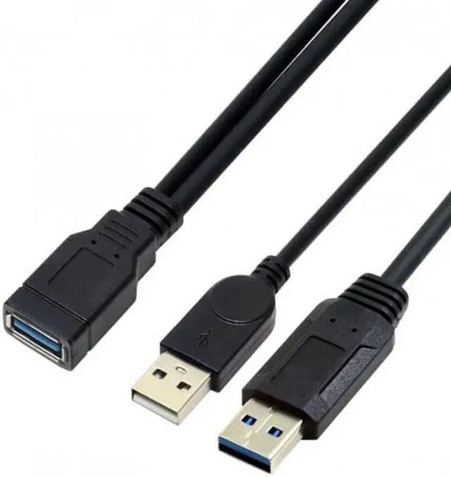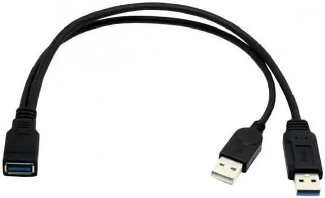 Black USB 3.0 Female to Dual USB Male Extra Power Data Y Extension Cable for 2.5" Mobile Hard Disk