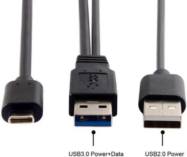 • Type-C USB-C to USB 3.0 Male USB 2.0 Dual Power Data Y Cable for Laptop Hard Disk