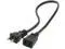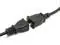 The female connector plugs directly into the device power cable while the male connector plugs into a standard outlet.