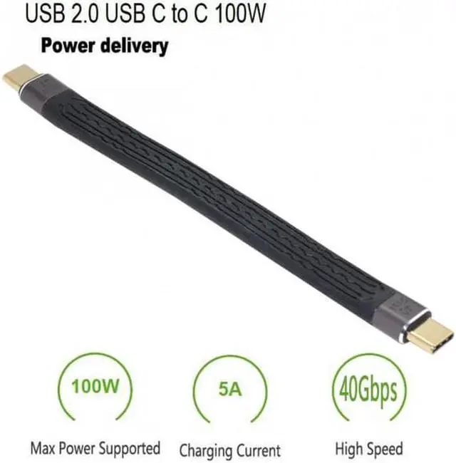 Type-C USB-C Male to Male USB4 40Gbps 100W 8K Flat Slim FPC Data Cable for Laptop Phone 13cm