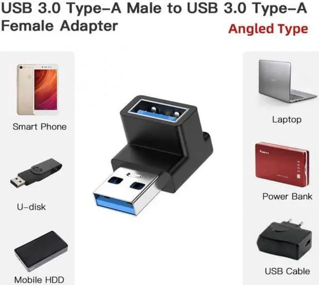 • Angled USB 3.0 Adapter, Type A Male/Female,Support 10Gbps data transfer rating.