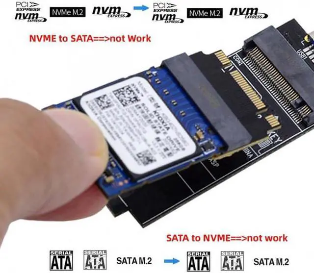 It can't convert NVME to SATA, also can't convert SATA to NVME.