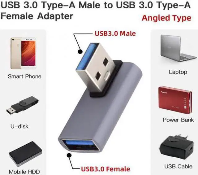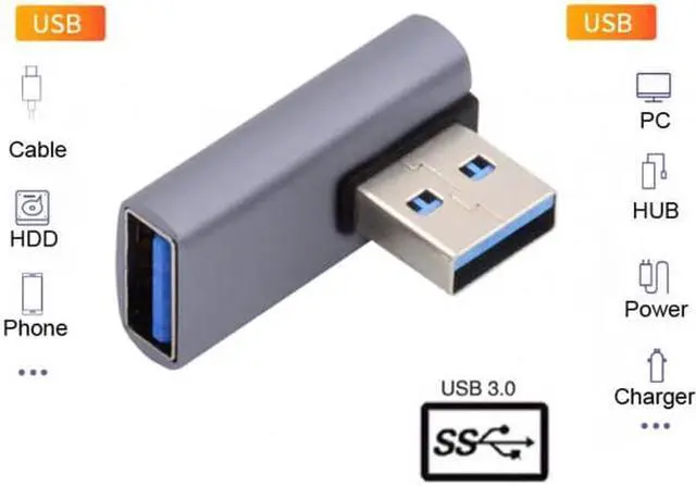 Angled USB 3.0 Adapter, Type A Male/Female, Support 10Gbps data transfer rating.