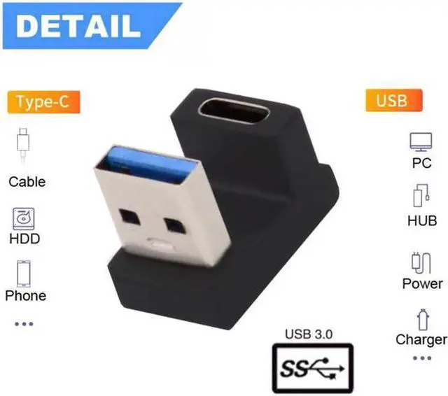 USB-C Type C Female Opposite U Shape Back Angled to USB 3.0 A Male Data Adapter for Laptop Desktop