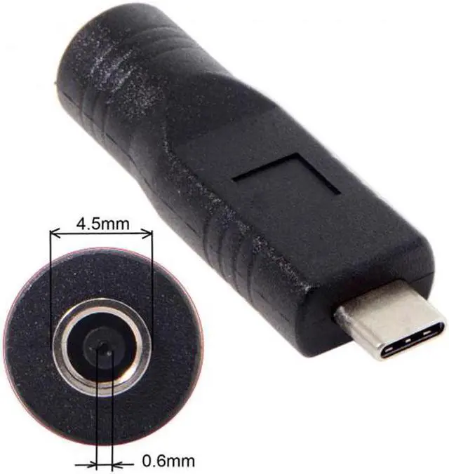 DC Jack 4.5 * 0.6 mm Input to USB-C Type-C Power Plug Charge Adapter for Laptop Phone