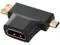 Micro HDMI male Mini HDMI male to HDMI 1.4 Female 90 degree 2 in 1 adapter CONNECTOR 1: Micro hdmi male connector CONNECTOR 2: Mini HDMI male connector CONNECTOR 3: HDMI Female connector