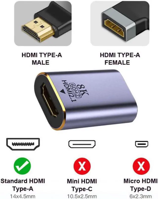 HDMI Female To HDMI 2.1 Female UHD Extension Gold Converter Adapter Support 8K 60hz HDTV