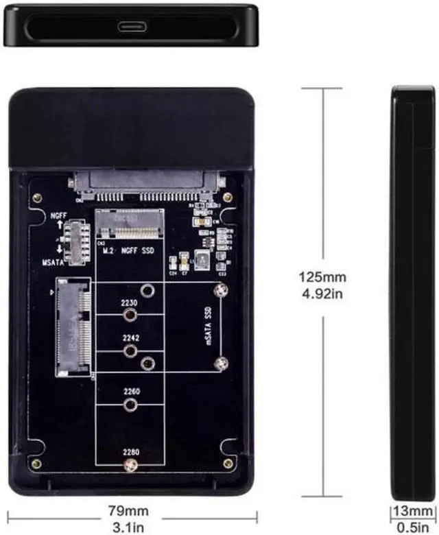 • Combo M.2 NGFF B-key mSATA SSD to USB Type-C Converter Case Enclosure with Switch