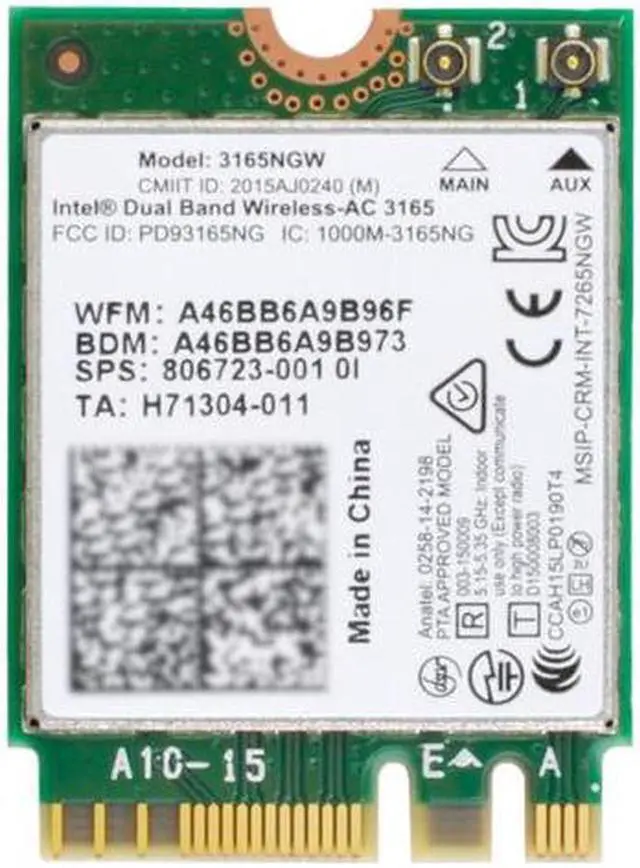 Model: Wireless-AC 3165 3165NGW