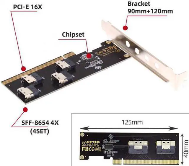 3. Four Slimline SFF-8654 4X design, Stable installation, Can run 4 PCIE disks at full speed at the same time.