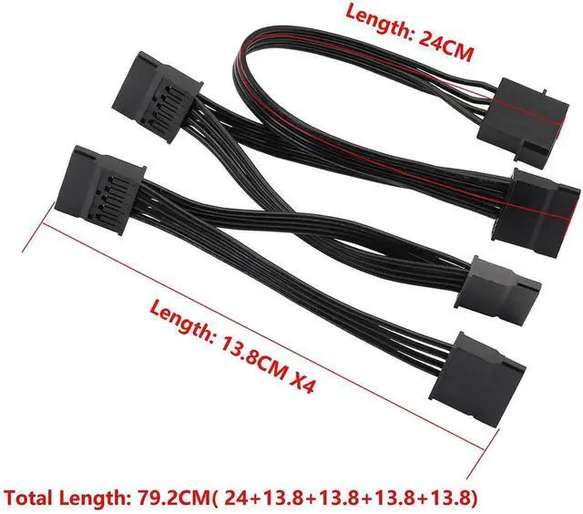 4Pin IDE Male 1 to 5 Female SATA 15Pin Splitter Power Cable Cord for PC Hard Drive