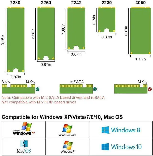 Use it to easily connect any of the 4 different size M. 2 NGFF SSD or full mSATA SSD to SATA port.